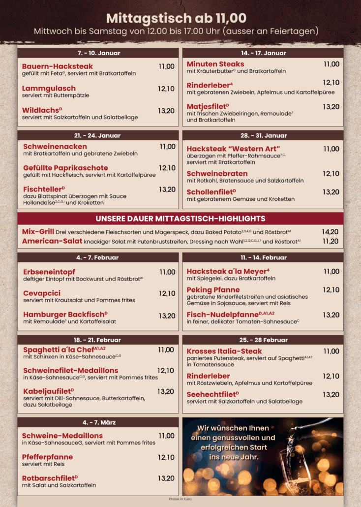 Irrtümer und Änderungen vorbehalten. Alle Preise verstehen sich inkl. MwSt.
